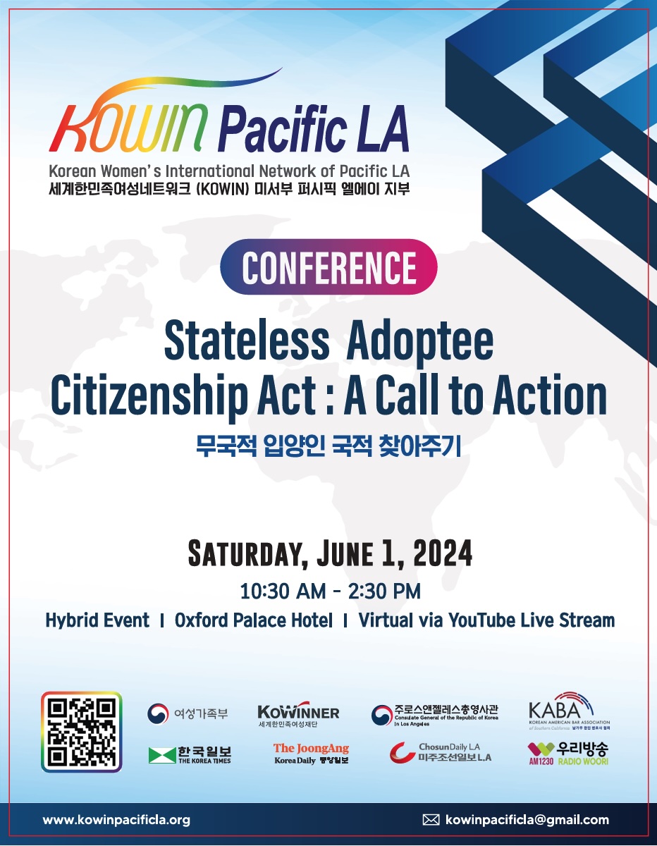KPLA held a conference on the Stateless Adoptee Citizenship Act on June 1, 2024, starting at 10:30 am, at Oxford Palace Hotel. Attendees learned about the latest developments in the legislation to grant citizenship to stateless adoptees and discussed concrete actions we can take to support its passage. There was no admission fee, and a simple lunch was provided.